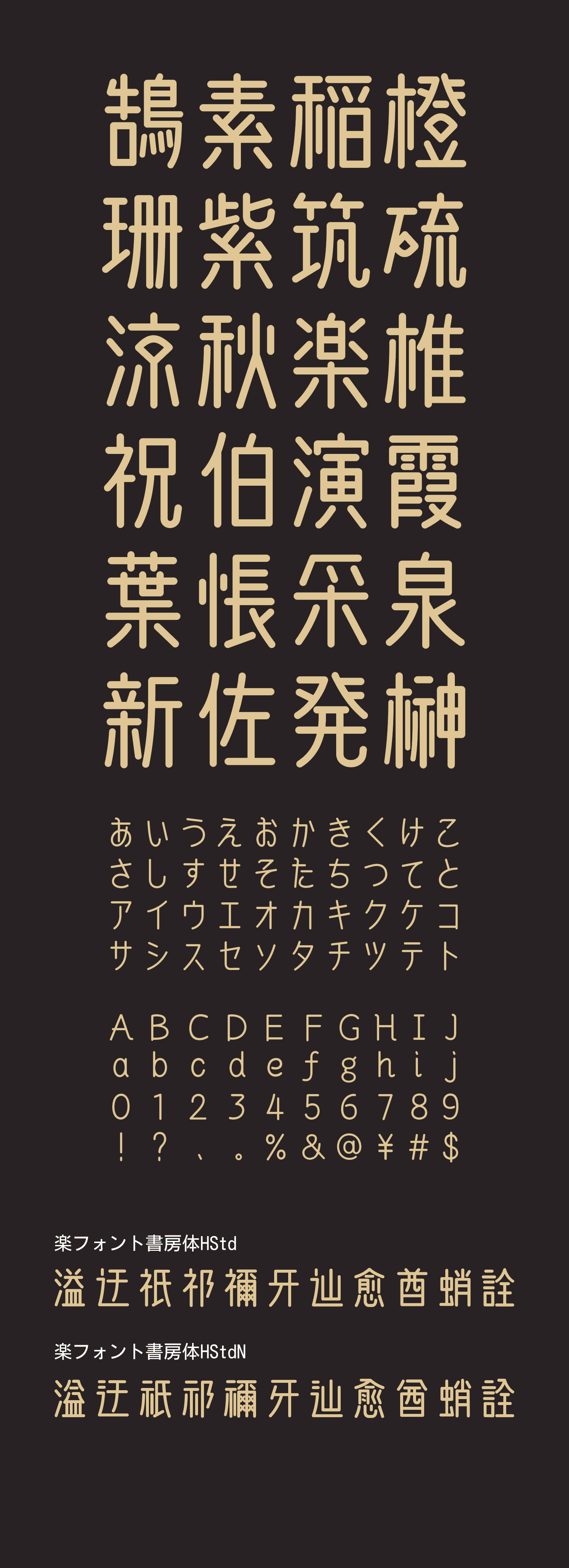 書房体特有のシャープでシンプルな字面を保ちながら、太い字幅を実現しているため、文字組みに圧迫感を与えません。