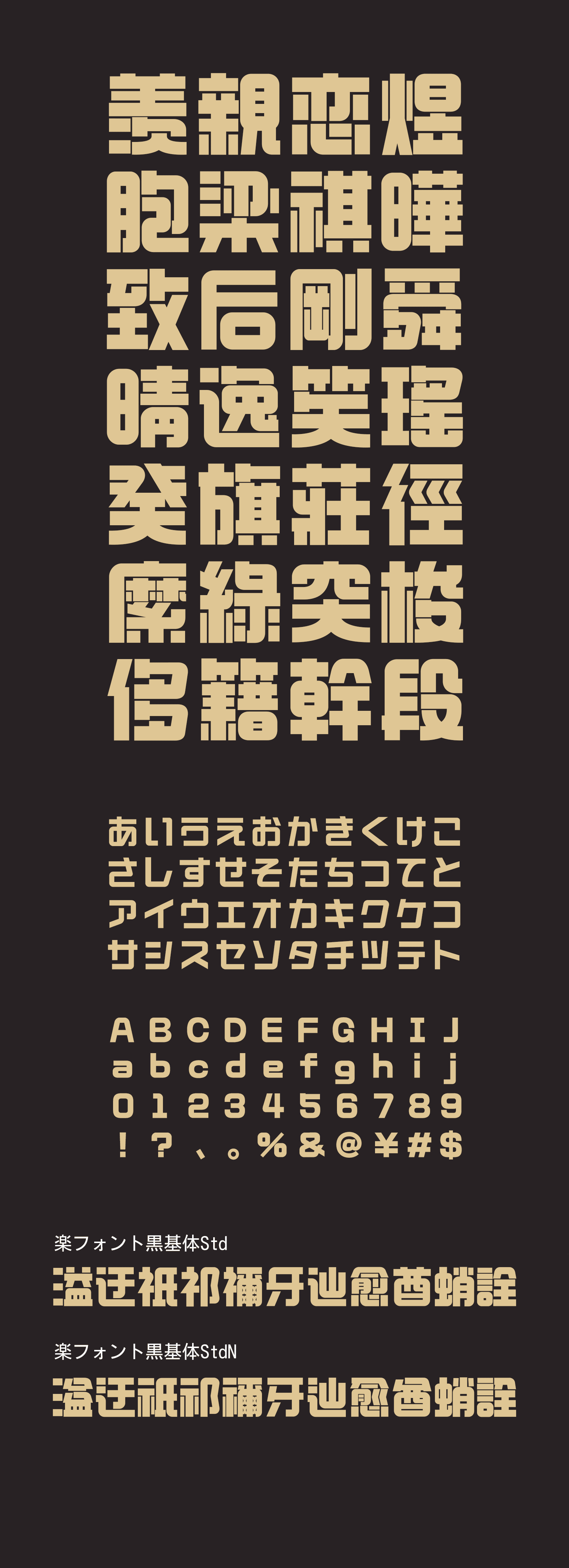 文字のふところを広く取り、安定感のある穏やかな雰囲気を演出。筆画の転換点には丸角を使っており、柔らかさとボリュームのあるゴシック体としての力強さを両立させています。その他、細部のデザインでは復雑な特徴をつけず、基本に戻った文字本来の素朴さと美しさを楽しめるような設計を施しています。