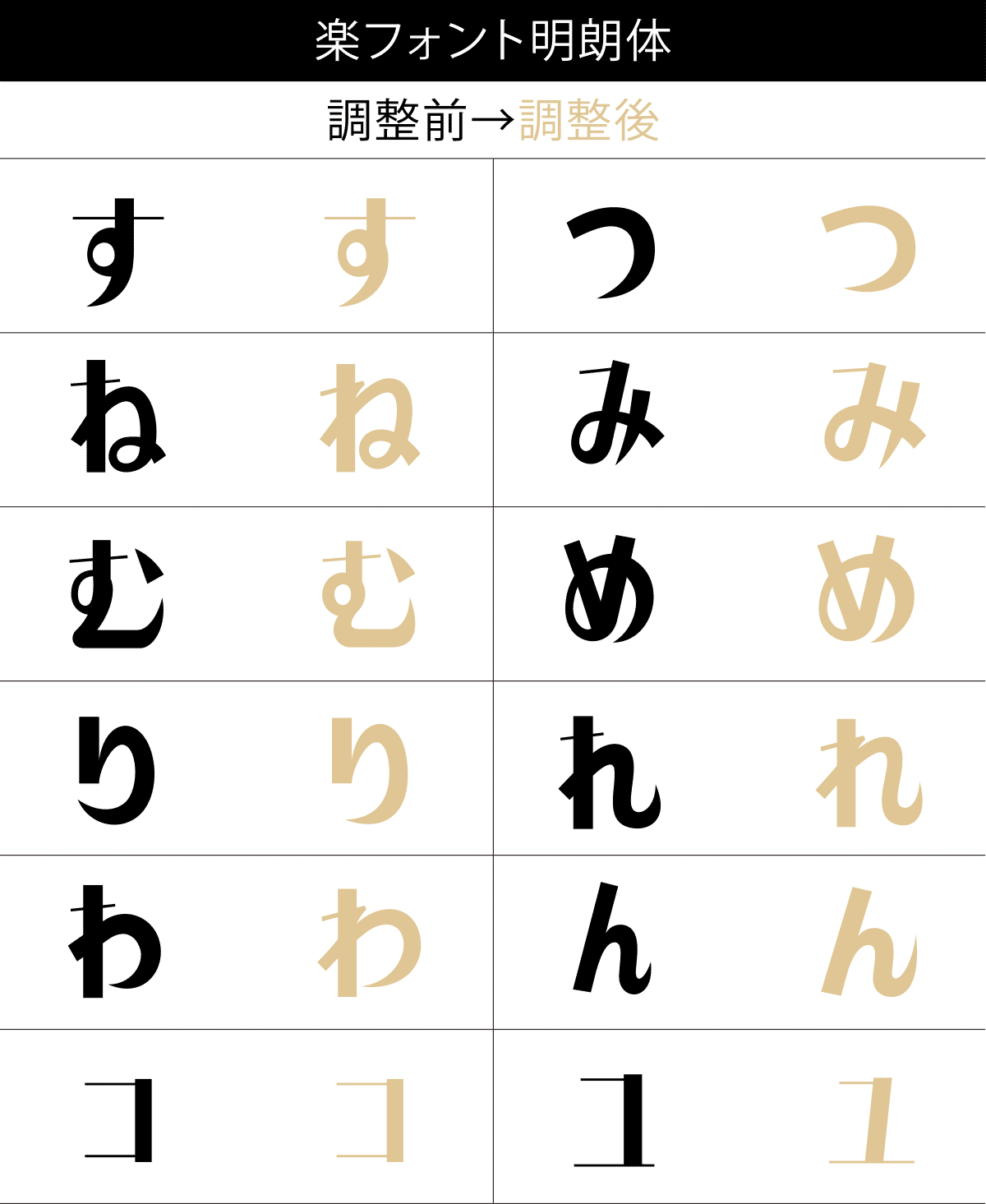 この度、楽フォント全7書体のひらがなに関して大幅なアップデートを行いました。